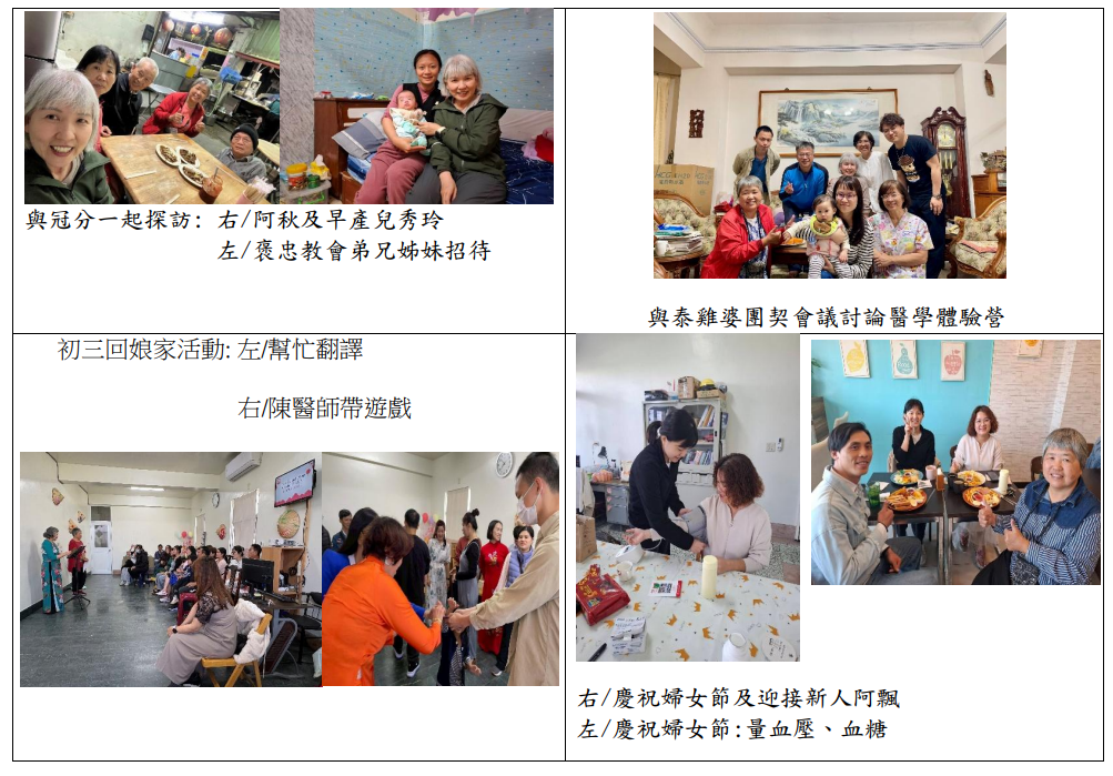 2 月 19 日,初三回娘家活動,有加拿大宣道會宣教士、有美國美南浸信會宣教士,也有我們 TCCV 同工,三方一起合一辦一場活動,讓沒有回越南娘家的越南人可以聚集。今年的主題是家庭關係,由陳醫師帶遊戲在歡樂中拉開序幕,然後敬拜,接著由范玉師母分享家人關係如何維持,她也就著在台越南人常常有的問題就是賺錢幫助家人的壓力,她要大家分組討論我們幫助家人的觀念,最後勉勵大家要把家人帶到上帝面前,讓他們獨立,從神來的學習,才是最重要的幫助。初三回娘家活動很順利,感謝主,有未信主者來參加。