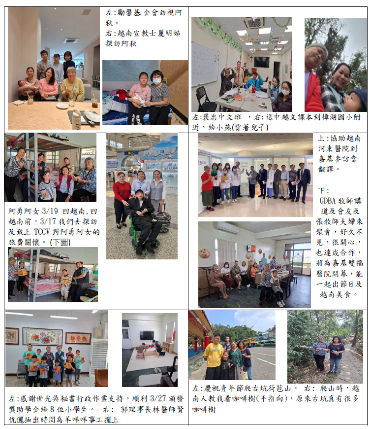 這幾天郭醫師和林醫師和我,已完成8位世光獎助學金的兒童探訪,因著兒童的進來,TCCV場地開始需要變動。感謝郭理事長及林醫師的協助奉獻時間及支持,場地有了兒童環境的氛圍。而讓我最觸動的是,隱藏在台灣人中的越南媽媽,及不想讓人知道媽媽是越南人的孩子們,甚至老師留的資料也沒呈現媽媽的國籍,是探訪時才得知。因著神的愛機會觸及他們,他們會問:「那個誰誰誰的媽媽也是越南人,那她會不會來?」。其實他們內心早就惦記這樣的身分及關注和自己一樣的對方,沒想到神的愛透過這些願意做羊咩咩事工的老師,包含配合的小學老師們的用心,而顯示出來。