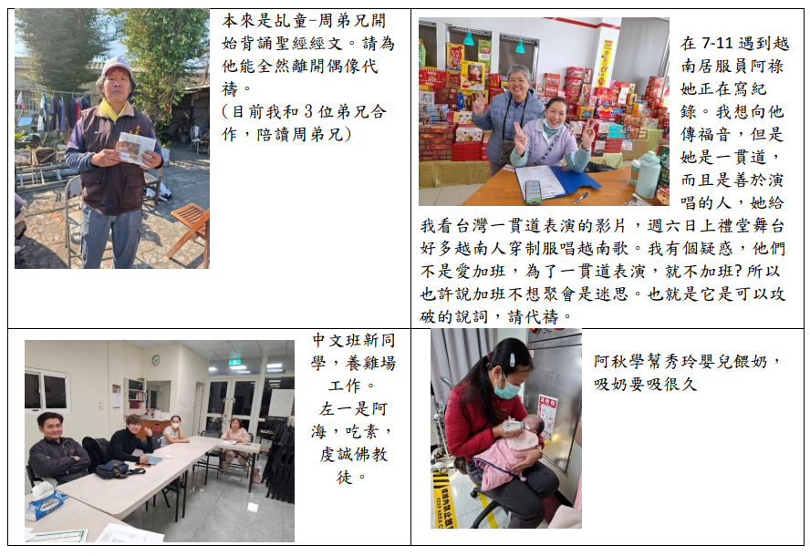 上一個月代禱信,有提到 2025 年我在保長主恩的陪伴一些困難的人個案狀況。大部分是經濟問題及孩子教養問題。大年初三,我和嘉安越南福音中心將合辦一個越南人回娘家活動,期待讓沒有回越南娘家的人,可以來參加。